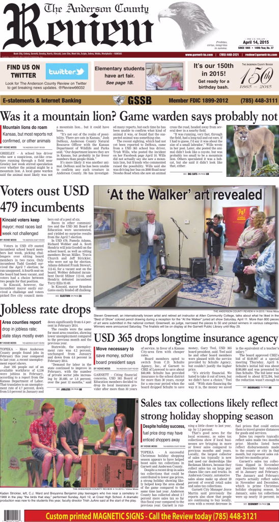Archived edition of the Anderson County Review from April 14, 2015. Search this edition and others like it on our website or download the original PDF.