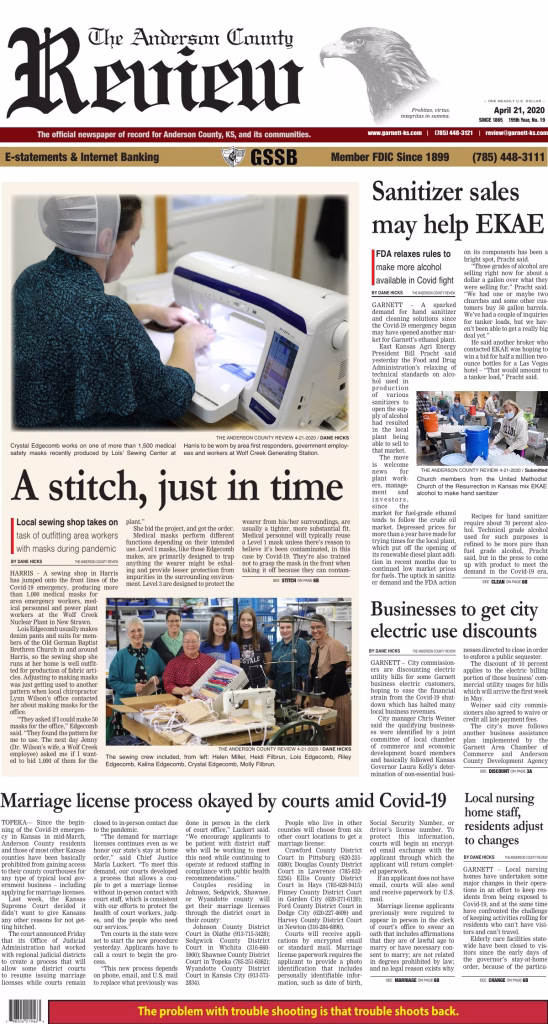 THE ANDERSON COUNTY REVIEW 4-21-2020 / DANE HICKS