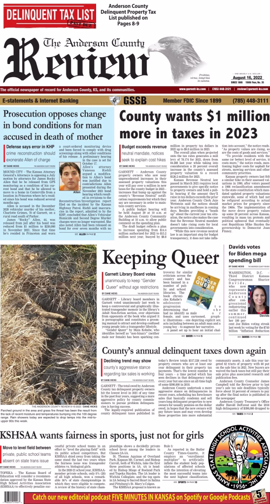 Archived edition of the Anderson County Review from August 16, 2022. Search this edition and others like it on our website or download the original PDF.