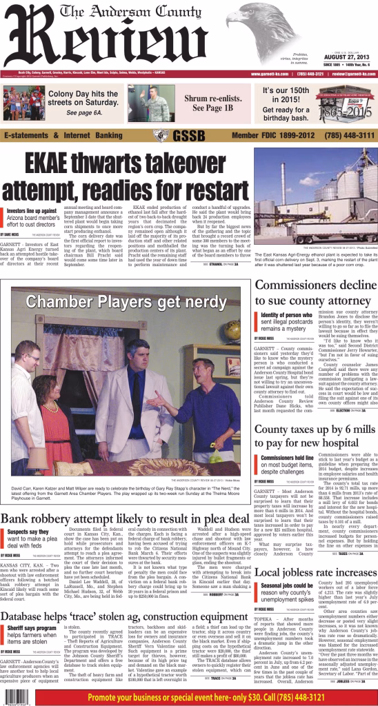 Archived edition of the Anderson County Review from August 27, 2013. Search this edition and others like it on our website or download the original PDF.
