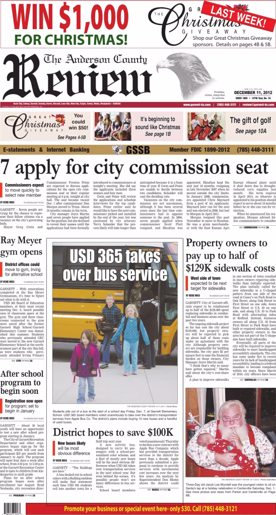 Archived edition of the Anderson County Review from December 11, 2012. Search this edition and others like it on our website or download the original PDF.