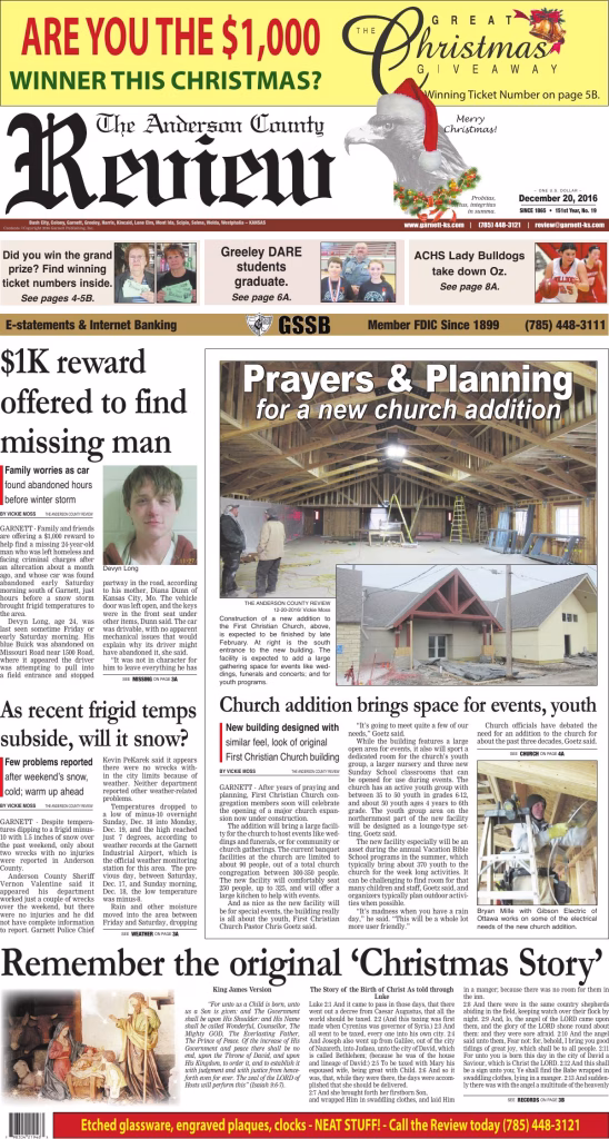 Archived edition of the Anderson County Review from December 20, 2016. Search this edition and others like it on our website or download the original PDF.