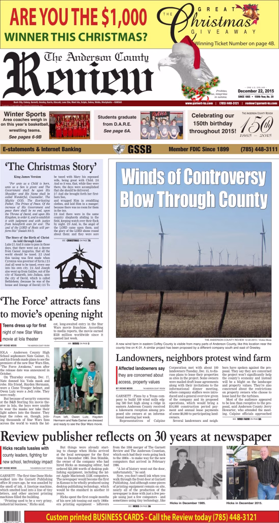 Archived edition of the Anderson County Review from December 22, 2015. Search this edition and others like it on our website or download the original PDF.