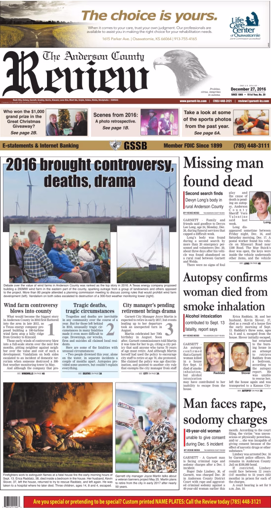 Archived edition of the Anderson County Review from December 27, 2016. Search this edition and others like it on our website or download the original PDF.