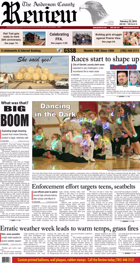 Archived edition of the Anderson County Review from February 23, 2016. Search this edition and others like it on our website or download the original PDF.