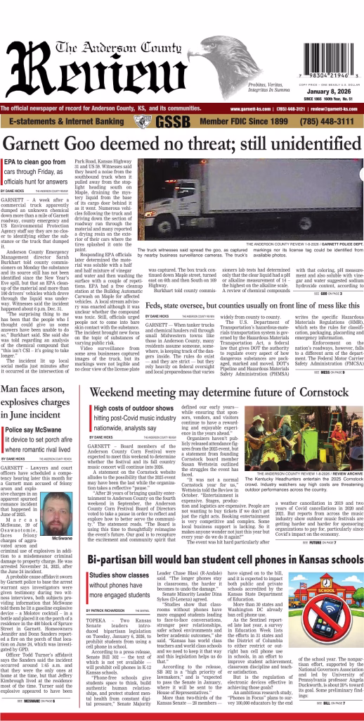 Archived edition of the Anderson County Review from January 8, 2026. Search this edition and others like it on our website or download the original PDF.