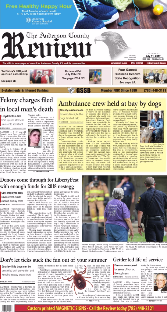 The official newspaper of record for Anderson County, KS, and its communities.