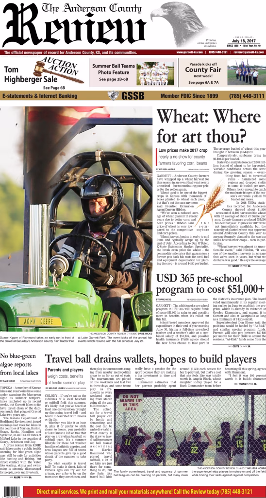 The official newspaper of record for Anderson County, KS, and its communities.