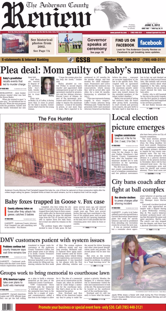 Archived edition of the Anderson County Review from June 5, 2012. Search this edition and others like it on our website or download the original PDF.