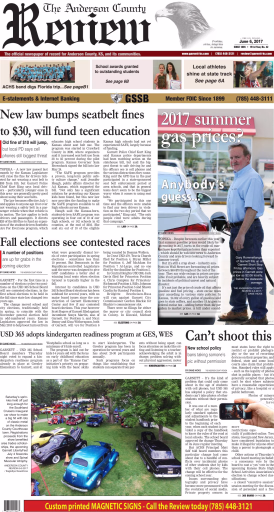 The official newspaper of record for Anderson County, KS, and its communities.