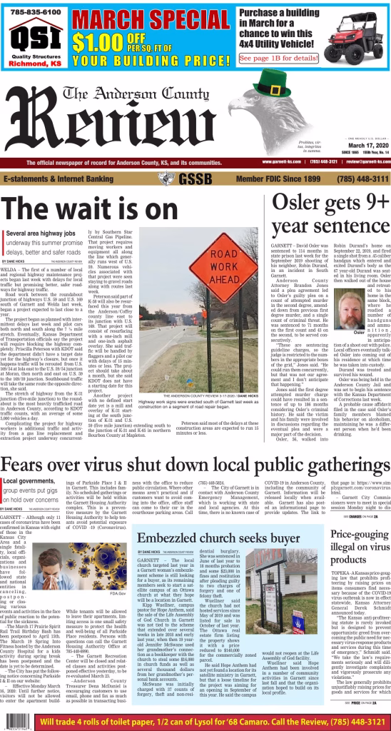 THE ANDERSON COUNTY REVIEW 3-17-2020 / DANE HICKS