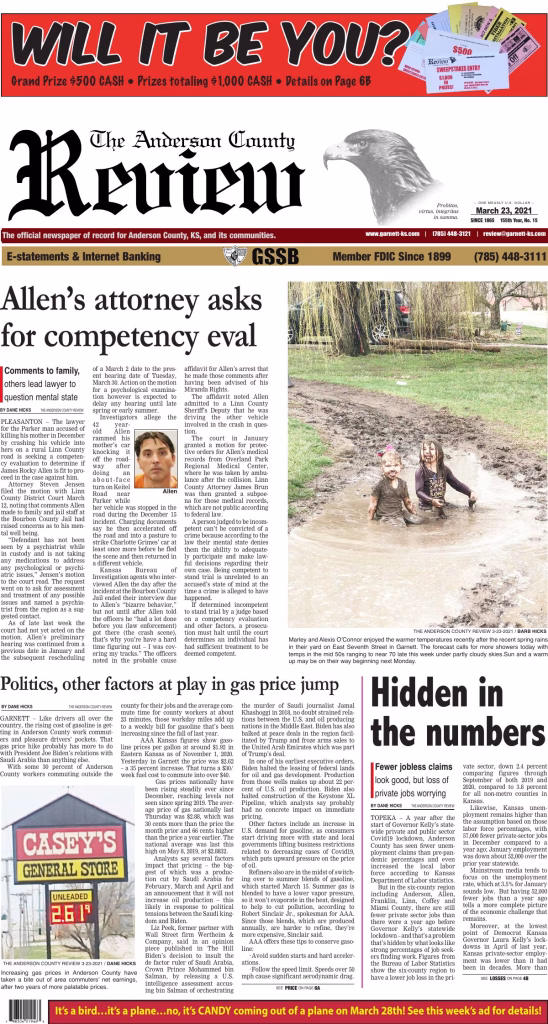 Archived edition of the Anderson County Review from March 23, 2021. Search this edition and others like it on our website or download the original PDF.