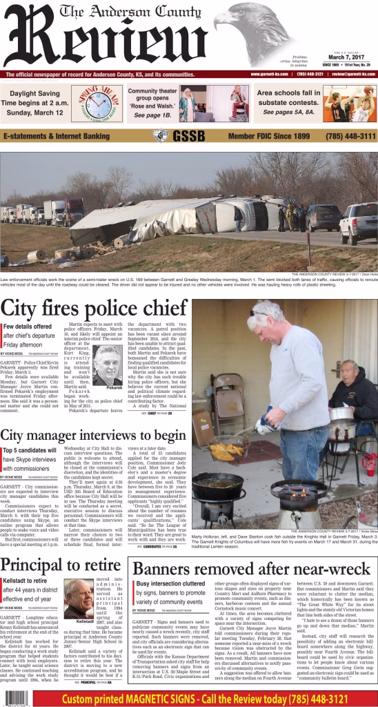 The official newspaper of record for Anderson County, KS, and its communities.