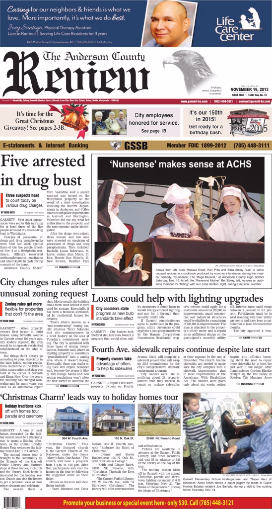 Archived edition of the Anderson County Review from November 19, 2013. Search this edition and others like it on our website or download the original PDF.