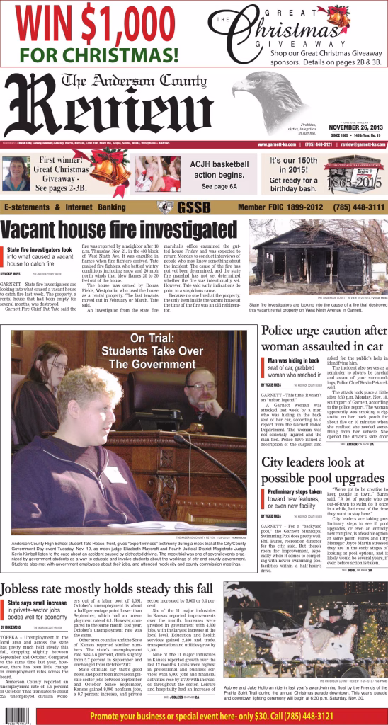 Archived edition of the Anderson County Review from November 26, 2013. Search this edition and others like it on our website or download the original PDF.
