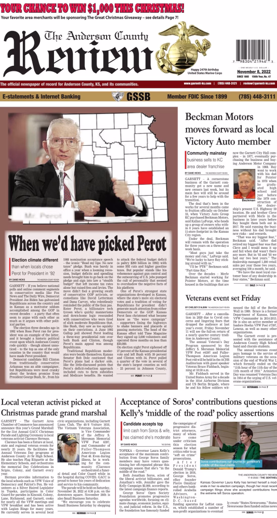 Archived edition of the Anderson County Review from November 8, 2022. Search this edition and others like it on our website or download the original PDF.