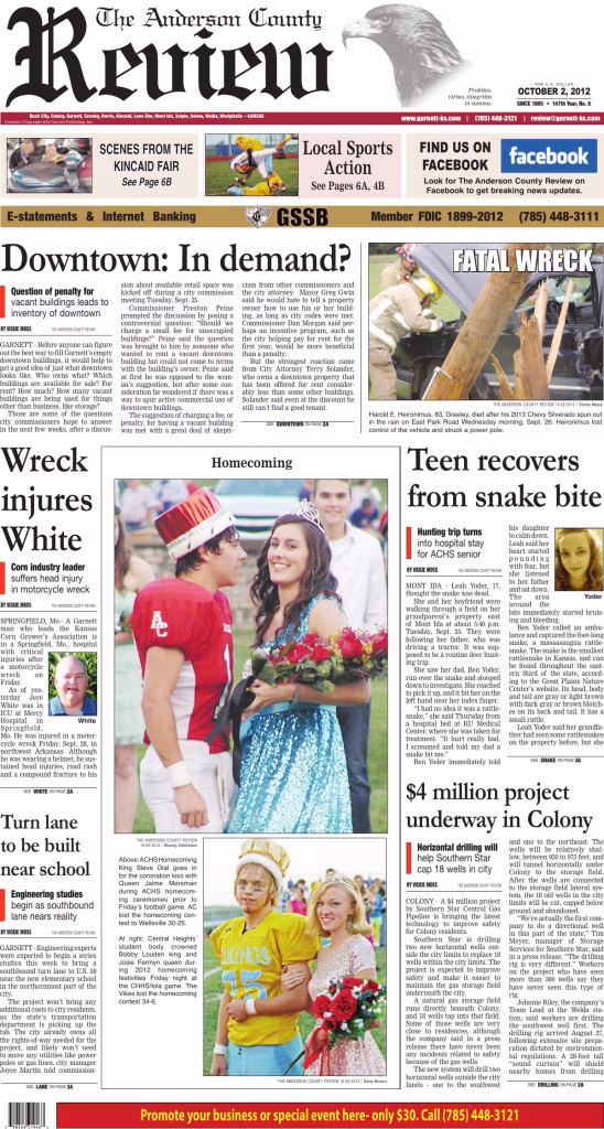 Archived edition of the Anderson County Review from October 2, 2012. Search this edition and others like it on our website or download the original PDF.