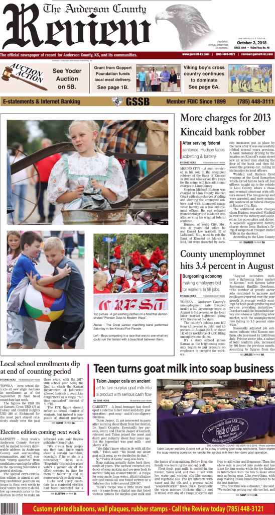 Archived edition of the Anderson County Review from October 2, 2018. Search this edition and others like it on our website or download the original PDF.
