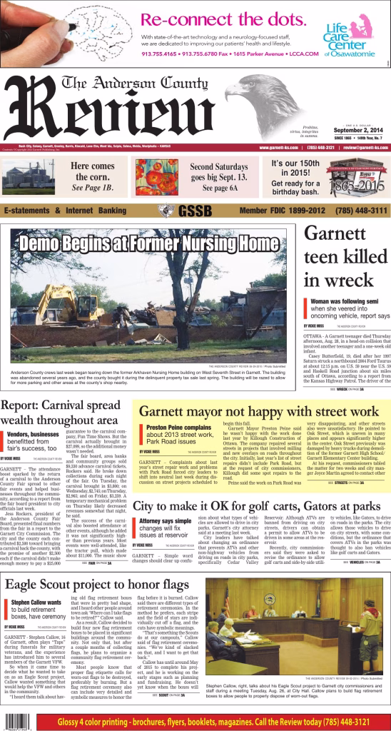 Archived edition of the Anderson County Review from September 2, 2014. Search this edition and others like it on our website or download the original PDF.