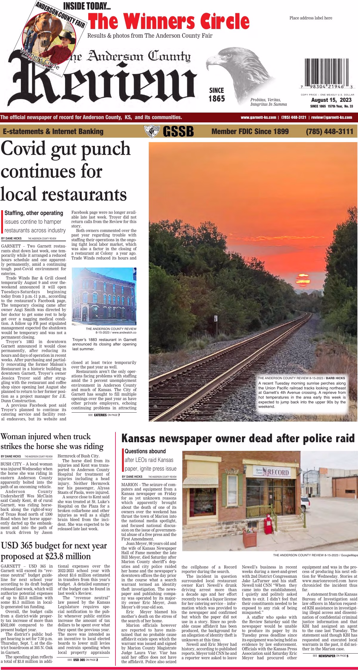 Archived edition of the Anderson County Review from August 15, 2023. Search this edition and others like it on our website or download the original…