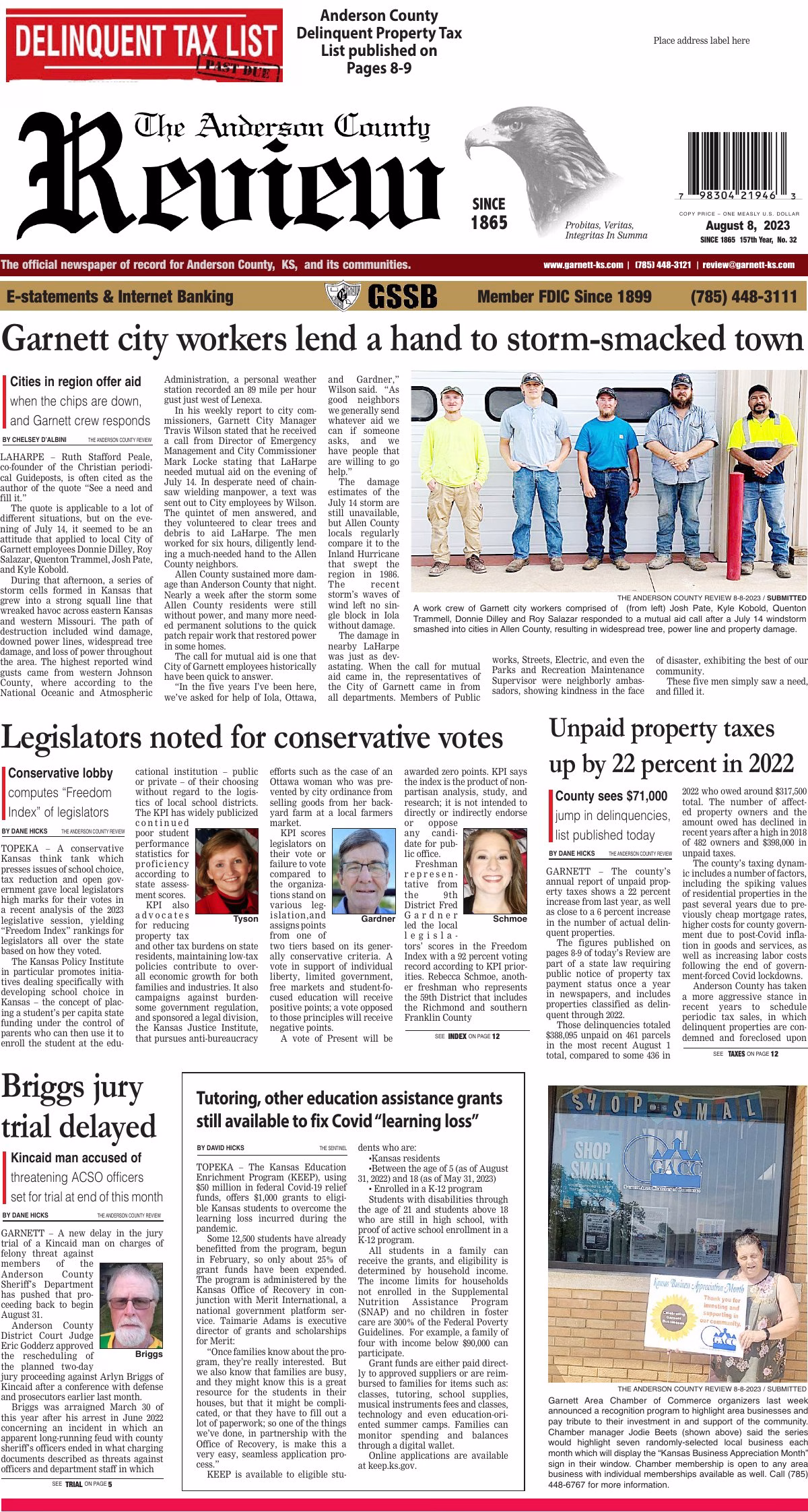 Archived edition of the Anderson County Review from August 8, 2023. Search this edition and others like it on our website or download the original…