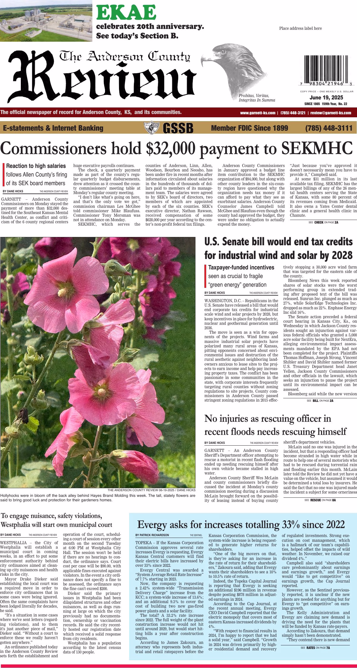 Archived edition of the Anderson County Review from June 19, 2025. Search this edition and others like it on our website or download the original…
