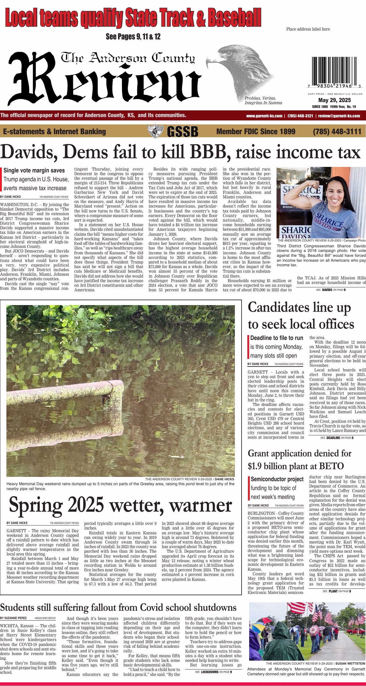 Archived edition of the Anderson County Review from May 29, 2025. Search this edition and others like it on our website or download the original…