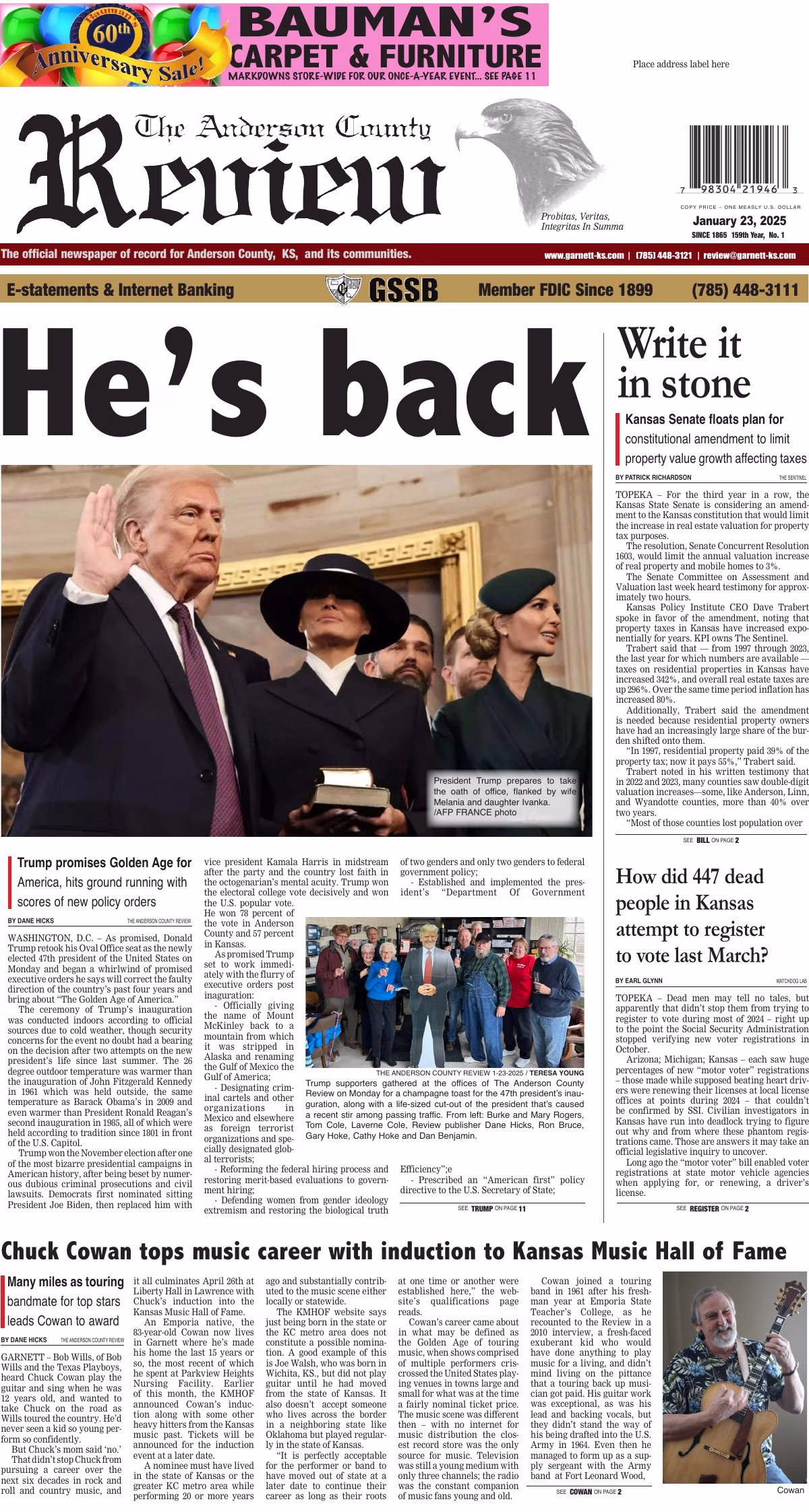 Archived edition of the Anderson County Review from January 23, 2025. Search this edition and others like it on our website or download the original…