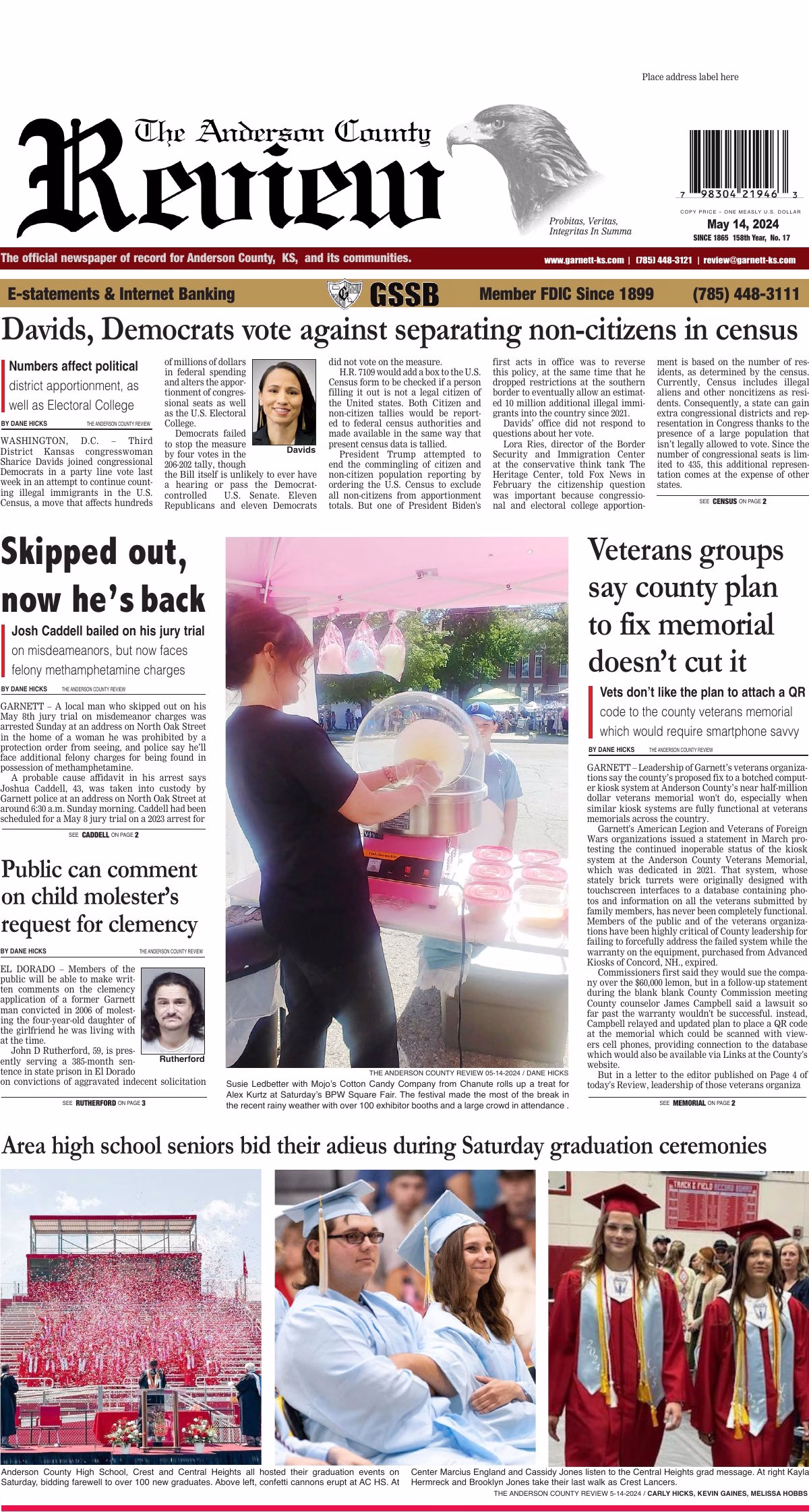 Archived edition of the Anderson County Review from May 14, 2024. Search this edition and others like it on our website or download the original…